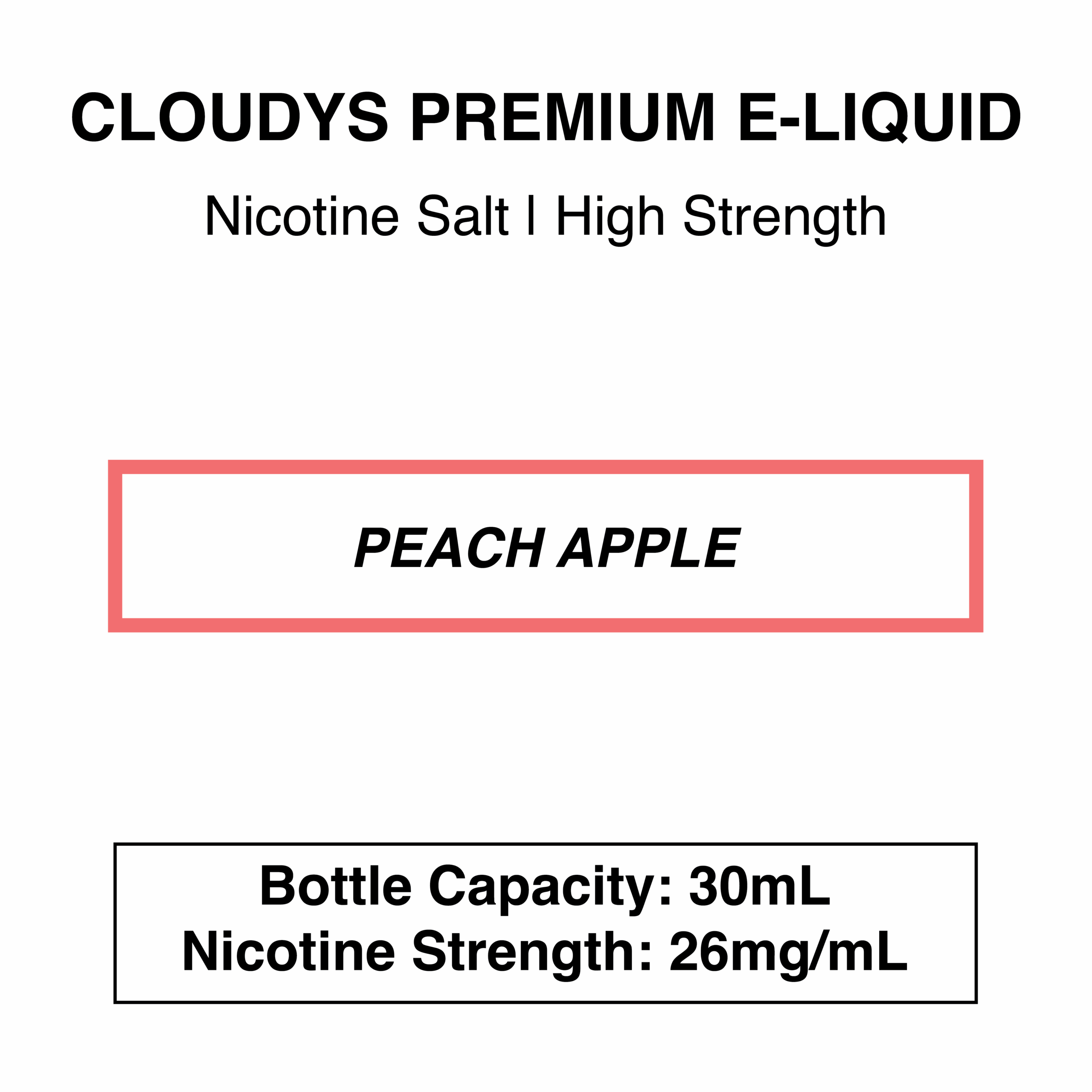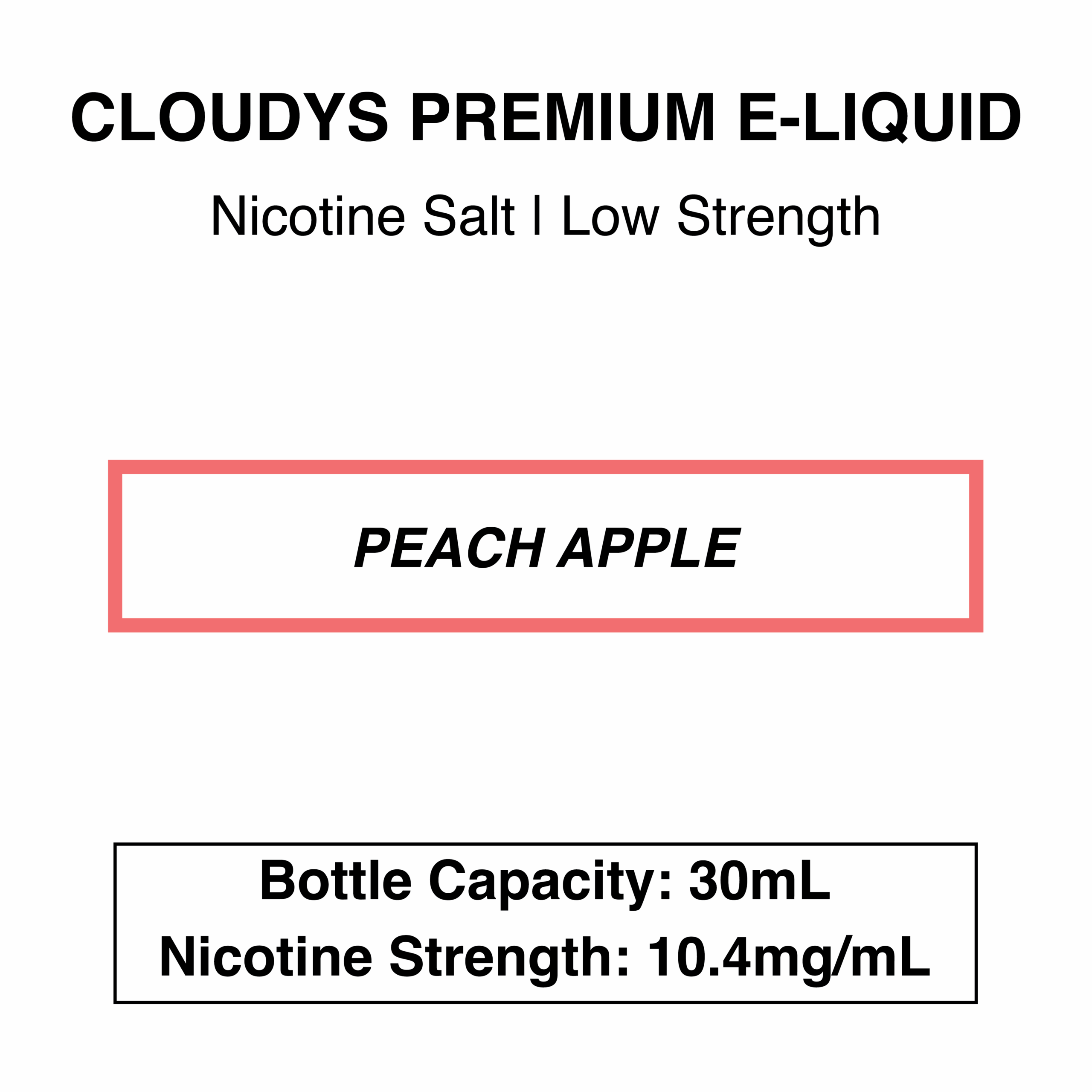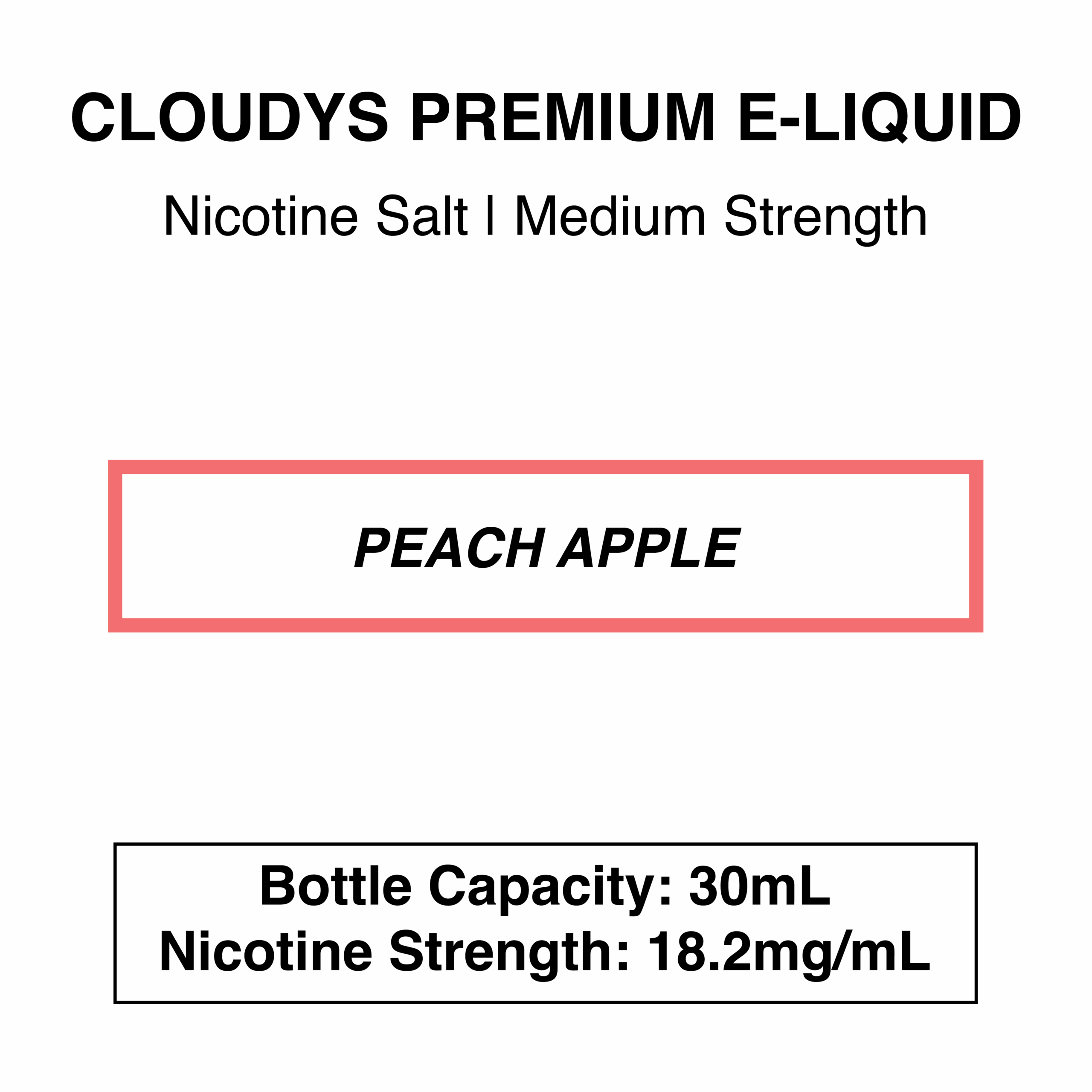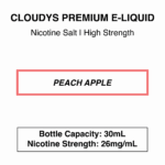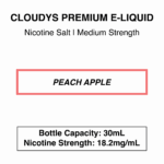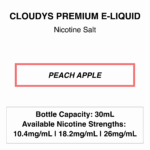 Cloudys Peach Apple: Juicy, sweet apple and peach with a menthol finish.